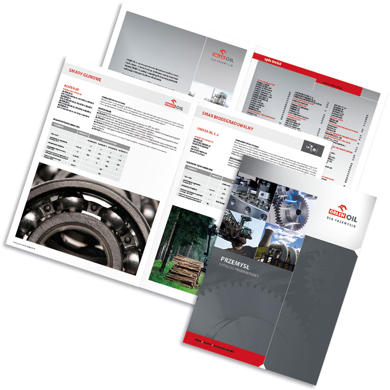 Projekt katalogu Przemysł dla firmy Orlen Oil. Konsekwentnie utrzymana linia katalogów akcentująca jakość produktów i profesjonalizm firmy oraz kompletność oferty. Druk offsetowy Objętość 88 stron.